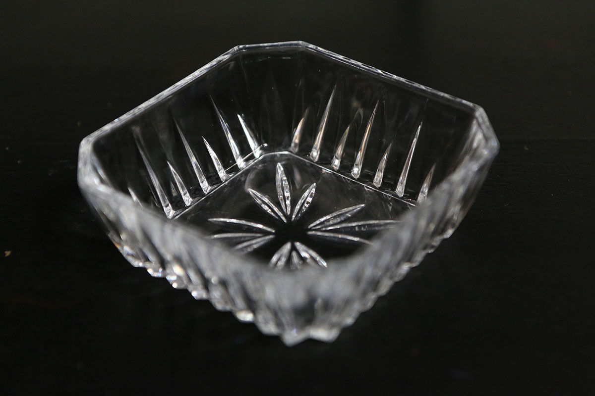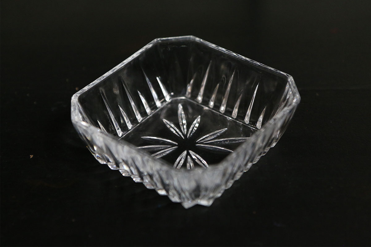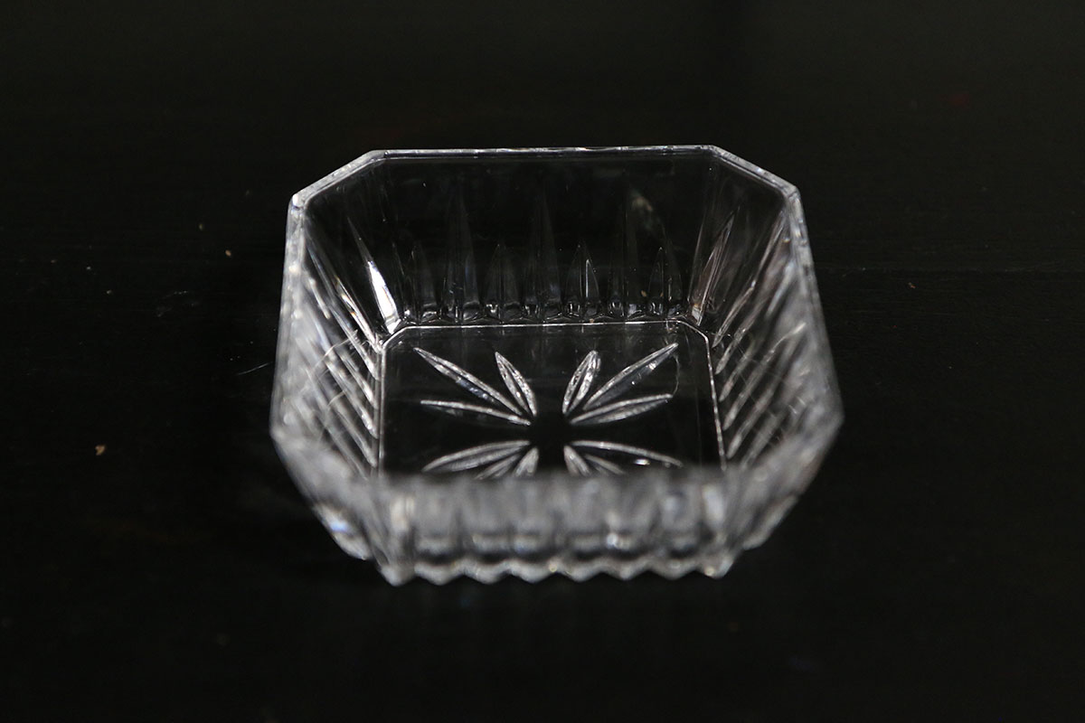 Mooi vierkant glazen schaaltje met een prachtige facet slijping op de bodem. Ben je op zoek naar een glazen schaaltje waarmee je de nootjes of toetjes net wat chiquer kan serveren? Dan zijn dit de schaaltjes die je zoekt. Ze zijn puntgaaf en erg mooi que dikte van het glas. Door de facet sier slijping in het glas lijkt het kristal.